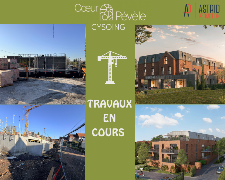 🚧 Actu travaux pour COEUR PEVELE 01/03/26 – COEUR PEVELE à Cysoing Avancement des travaux avec la réalisation du sous-sol (parkings garages) et démarrage & élévations du rez-de chaussée =>Dernières opportunités T3/T4 à saisir dès 264 000 € => Contactez-nous